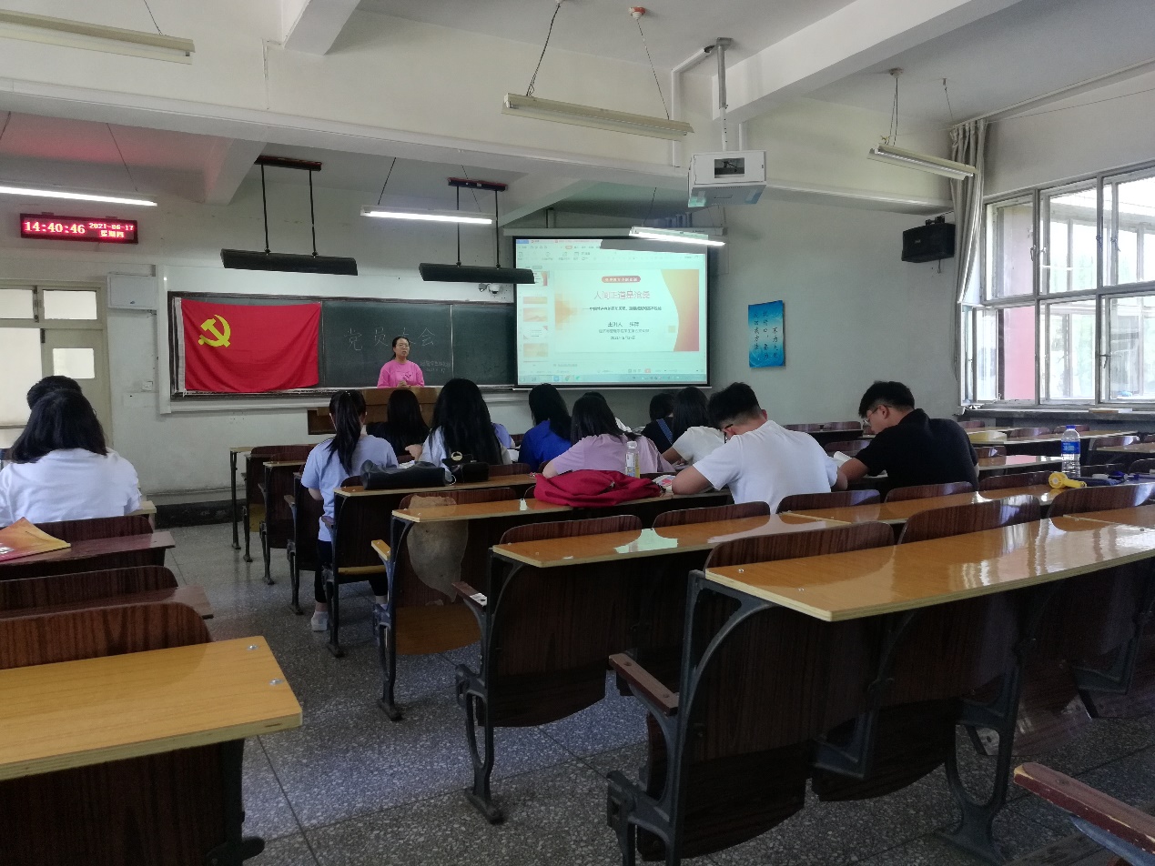 2021年6月17日,ok138cn太阳集团古天乐学生第四党支部支部书记张萍在主教D218讲党课,张萍主要内容围绕中国共产党的百年历程、重要成就和基本经验进行讲述,内容主要为五部分:1.时代的召唤:历史和人民选择了中国共产党;2.百年奋斗历程:中国共产党是这样成功的;3.百年辉煌业绩:中国共产党做成了这些大事;4.百年成功密码:中国共产党为什么能够成功;5.把握历史大势:继往开来成大道