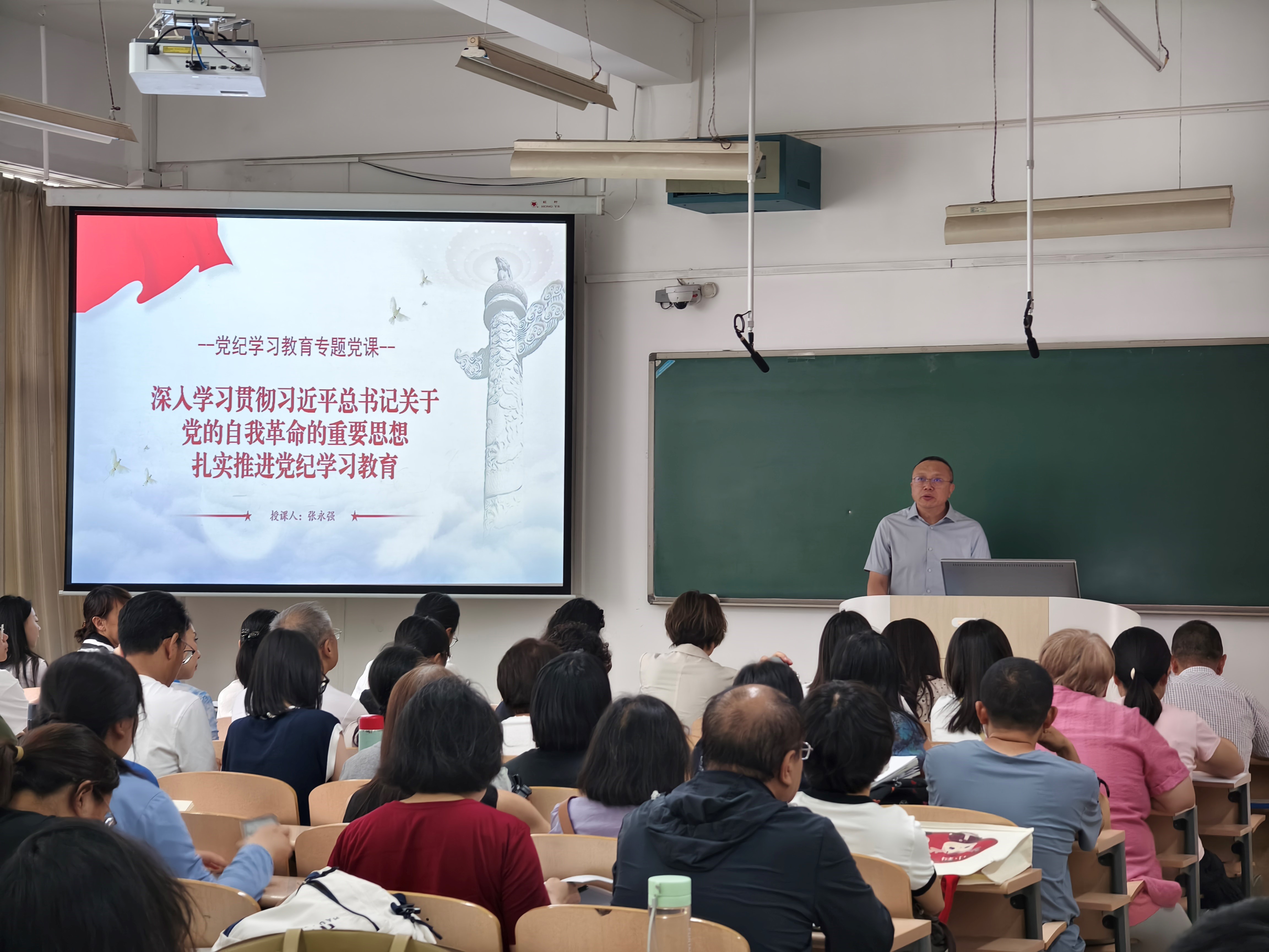 6月20日,ok138cn太阳集团古天乐党委书记张永强在主教E107以《深入学习贯彻习近平总书记关于党的自我革命的重要思想 扎实推进党纪学习教育》为题讲授党纪学习教育专题党课。学院130余名师生党员听取了党课。
