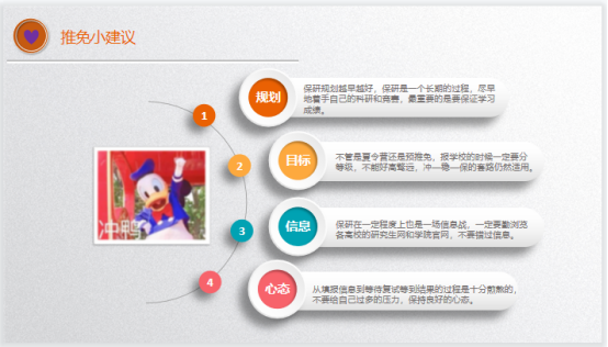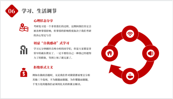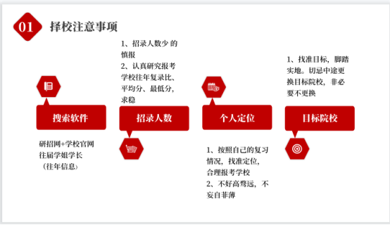 杨学姐从考研的基础阶段、提升阶段和冲刺阶段的准备技巧进行了经验分享。她重点从考研心理战“坚持、心态和细节”主要矛盾方面分享符合克服考研面对的各种困难,不患得患失,更不要轻言放弃,只要坚持到底就会有所收获。
