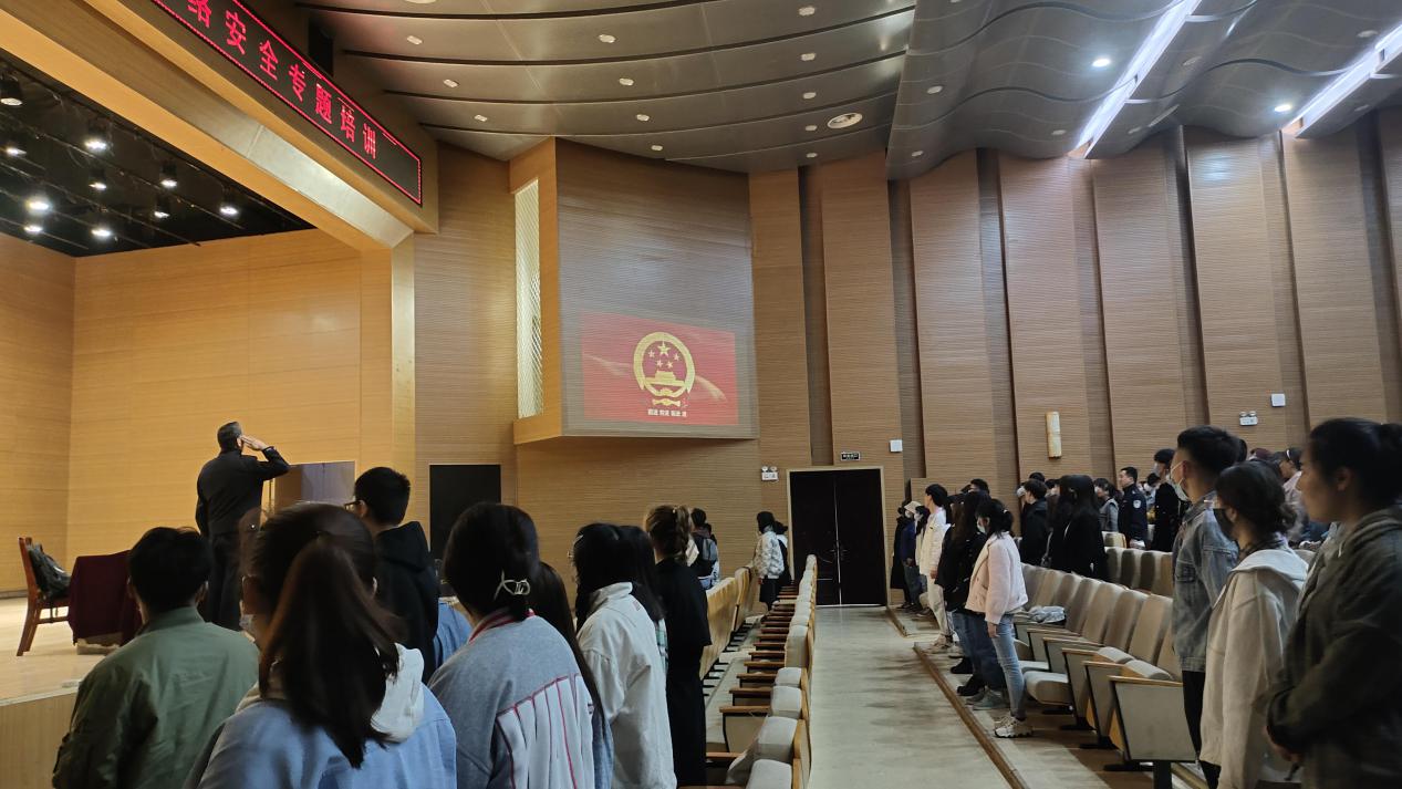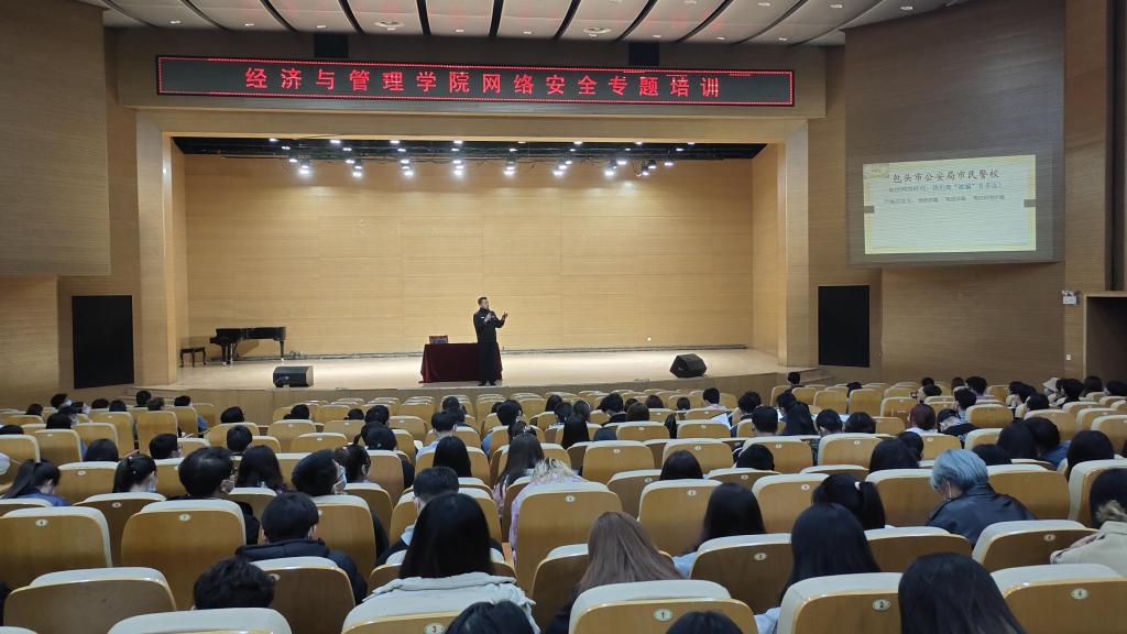 为进一步提高学生安全防范意识, 3月18日下午,ok138cn太阳集团古天乐“预防电信诈骗网络安全知识讲座”于音乐厅举行,讲座特邀包头市公安局昆都仑区公安分局,反诈骗联盟成员贾立警官进行防范诈骗知识讲解,学院各专业年级班委及宿舍长积极响应参加。