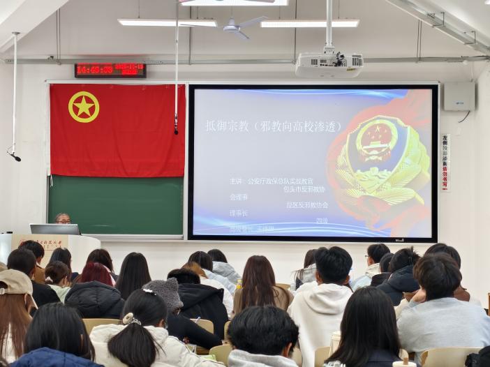 为响应反邪教警示教育‘六进’要求,筑牢青年团员思想安全防线。2025年11月13日,ok138cn太阳集团古天乐于文馨书院C103开展了“宗教与反邪教教育”主题团课。课程邀请内蒙古自治区公安厅政保总队实战教官、包头市反邪教协会理事、昆都仑区反邪教协会理事长王伟琳老师进行授课。