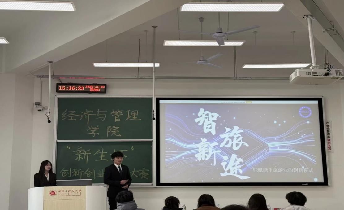 历经一个多月的精心筹备与严格选拔,大赛于11月中旬顺利完成通讯评审,共有18支优秀团队脱颖而出,成功晋级决赛。决赛现场,各团队通过路演展示与现场答辩,系统呈现了项目创意、商业模式及团队协作能力。同学们自信从容的陈述与逻辑清晰的应答,赢得了现场评委的一致肯定,展现出2025级经管学子扎实的综合素养与昂扬的青春风貌。
