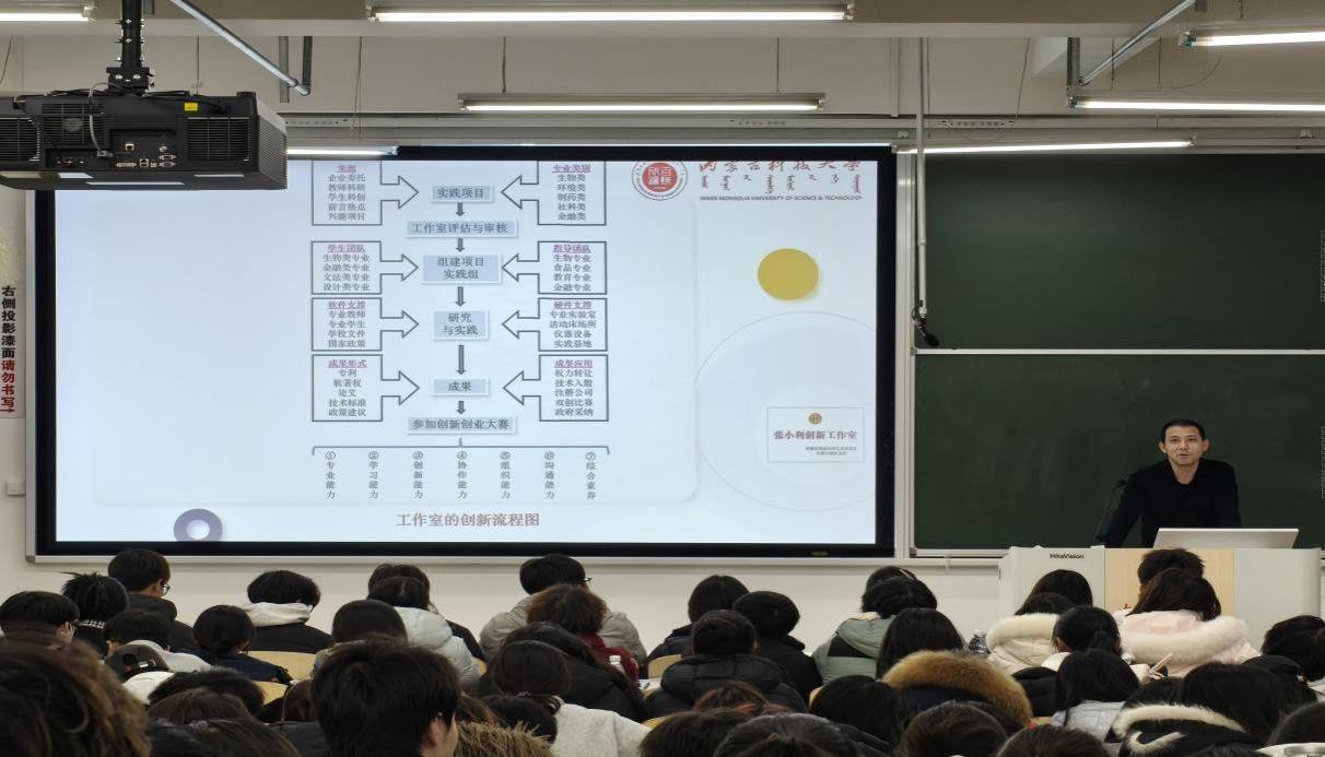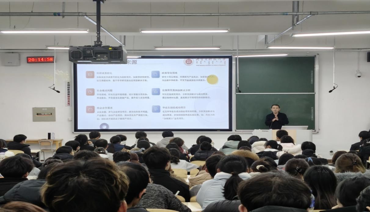 为提升讲解效果,张小利老师借助创新流程图、可行性分析框架等可视化工具,将赛事理论转化为直观易懂的知识模块。现场学生专注聆听,积极互动,学习氛围浓厚。