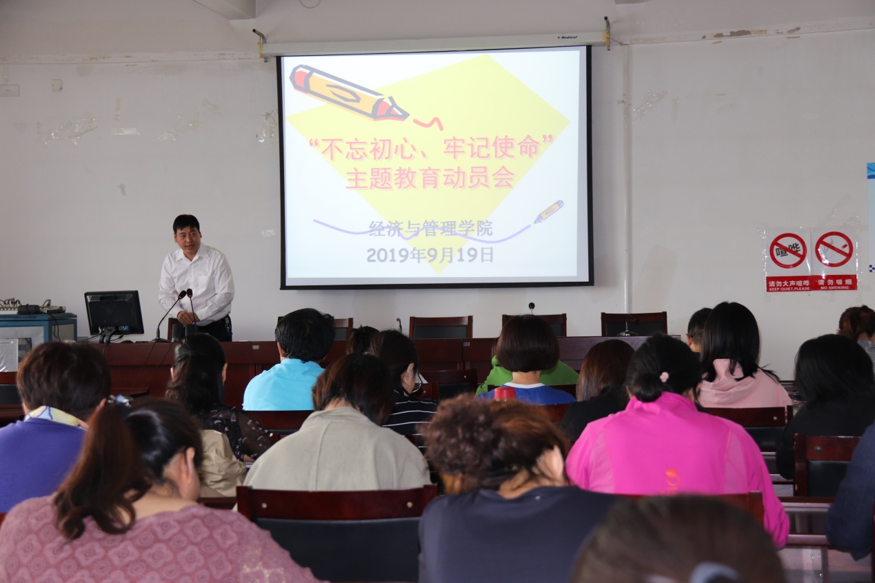 为了学习贯彻习近平总书记在“不忘初心、牢记使命”主题教育工作会议上的重要讲话精神,落实校党委“不忘初心、牢记使命”主题教育动员部署会议精神。9月19日下午3点,ok138cn太阳集团古天乐党总支“不忘初心、牢记使命”主题教育动员会在腾飞楼A413举行,党总支书记马广辉主持会议,ok138cn太阳集团古天乐全体教师参加会议。