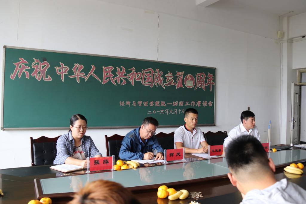 2019年9月19日下午,ok138cn太阳集团古天乐在腾飞楼A307召开了庆祝中华人民共和国成立70周年统一战线座谈会。党总支书记马广辉,党总支副书记、副院长王玉泉,党总支统战委员郝戊教授、党总支宣传委员张萍老师、各民主党派教师、无党派教师、宗教信仰学生代表以及少数民族学生代表参加了此次座谈会。