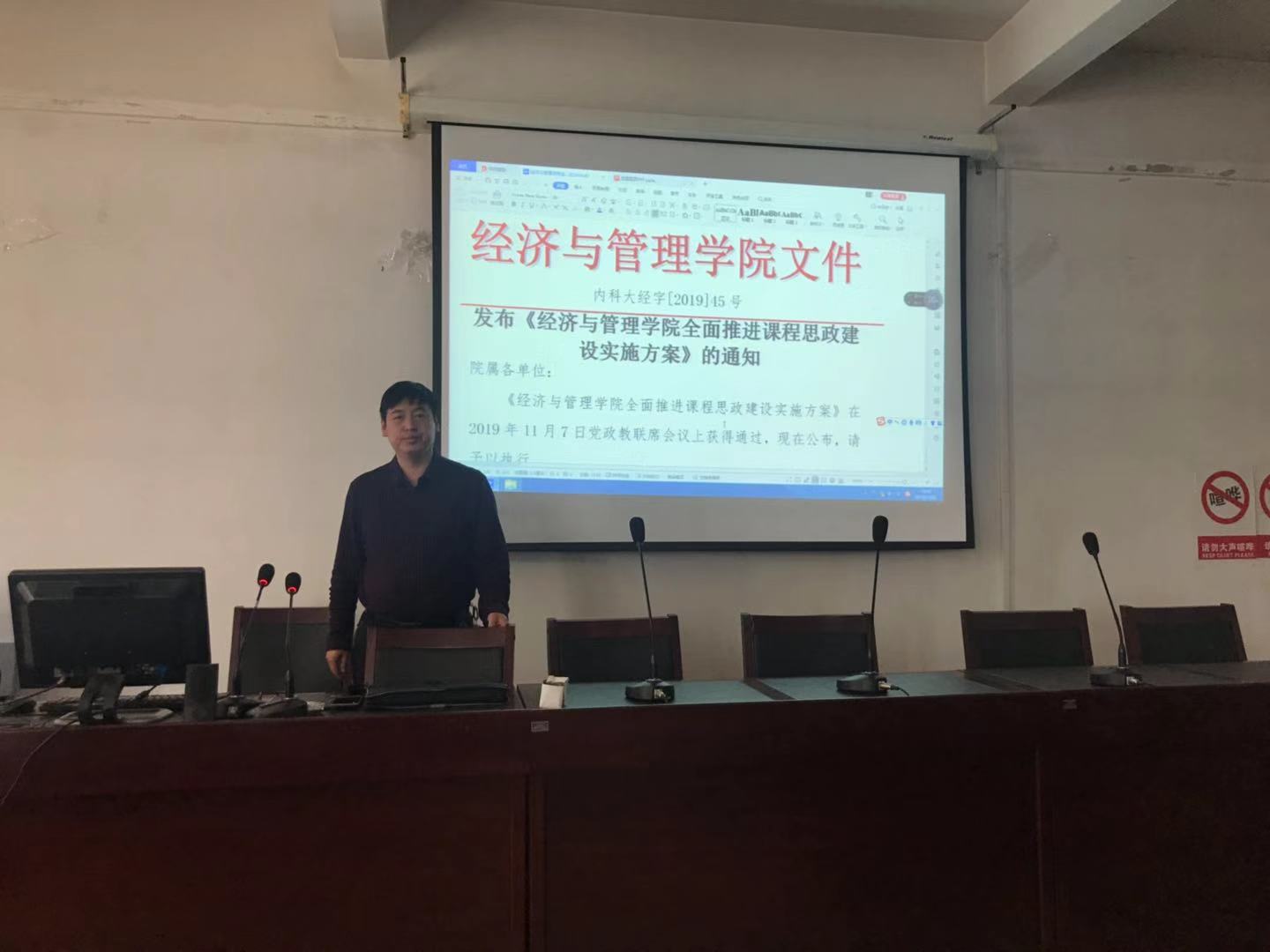 20191121日下午,ok138cn太阳集团古天乐党总支组织全院教职工在腾飞楼A413政治理论学习,会议学习了《ok138cn太阳集团古天乐全面推进课程思政建设实施方案》。