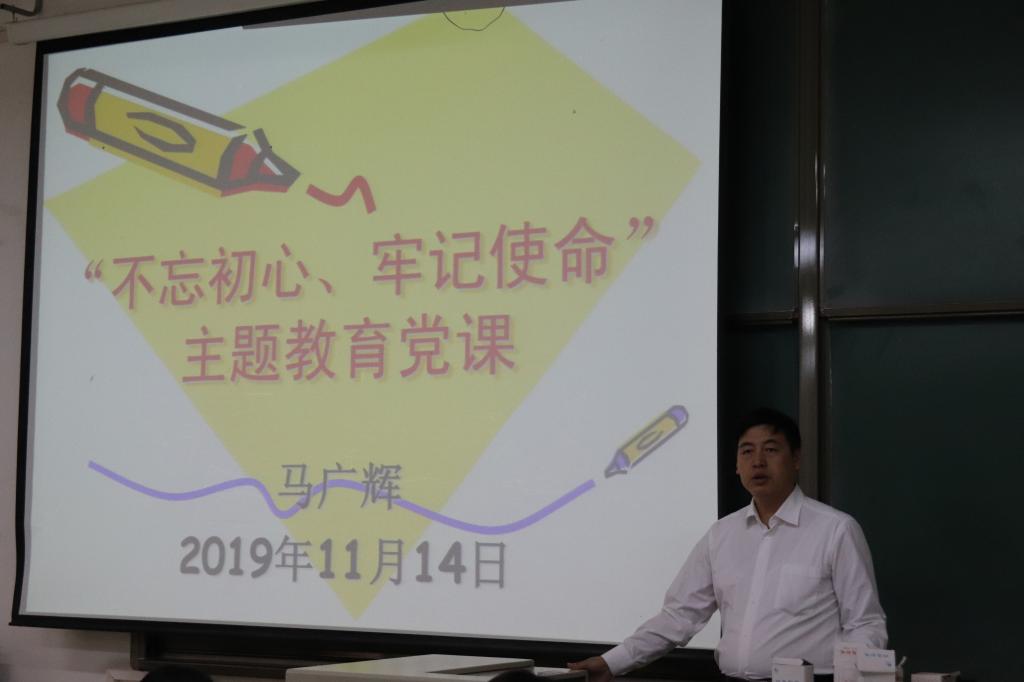 按照学校党委主题教育统一安排部署,20191114日,ok138cn太阳集团古天乐党总支书记马广辉同志在逸夫楼G101讲“不忘初心、牢记使命”教育专题党课。