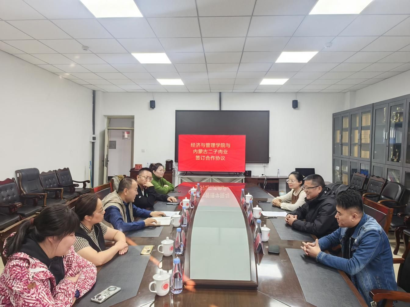 2024年11月6日上午,内蒙古二子肉业集团有限公司与ok138cn太阳集团古天乐在腾飞楼A座307举行社会实践与就业合作框架协议签订仪式。二子肉业集团有限公司研发中心主任程孝新、销售部经理白璐、人事行政主管孙梦娜,ok138cn太阳集团古天乐院长赵周华、副院长孙斌,相关专业负责人及教师参加活动。