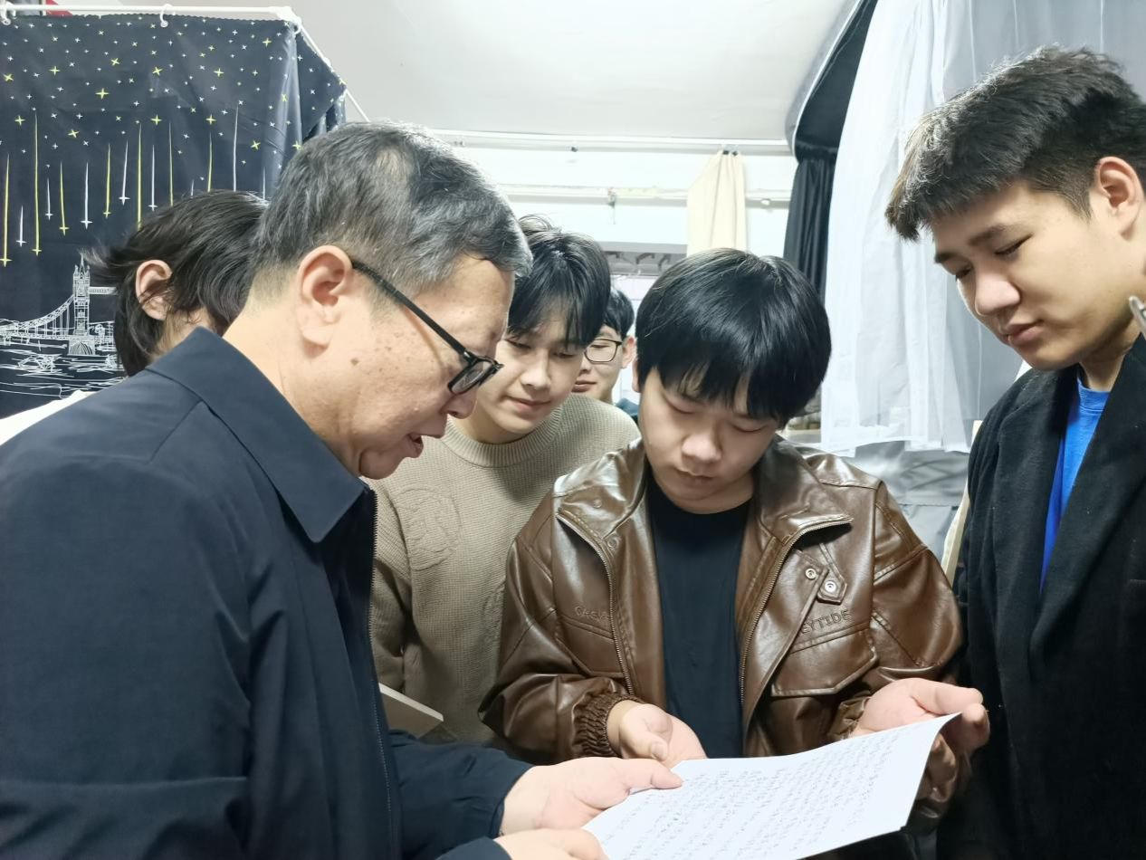 交谈中,杨建林认真听取了同学们对学校教育教学、校园生活、宿舍管理等方面的意见和建议,表示学校会尽力为大家提供更好的学习和生活环境,希望大家共同营造一个和谐、积极向上的宿舍氛围。