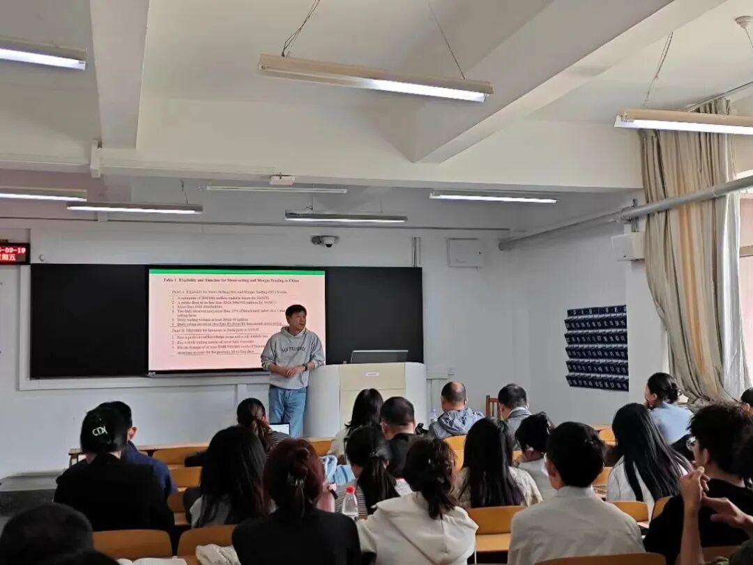 2025年9月19日,复旦大学孙谦教授应邀来到ok138cn太阳集团古天乐,就“卖空限制与股票收益预测”与师生们进行座谈交流和学术讲座,为师生们带来了一场精彩的学术盛宴。 讲座中,孙谦教授并未局限于理论阐述,而是结合具体研究案例,深入浅出地讲解了卖空限制对股票市场的影响。他通过实际数据和图表,分析了政策实施前后股票价格的变化,指出卖空限制会导致市场信息量减少,从而使短期股价预测能力下降。孙教授的分享为师生们提供了一个“如何从现实政策变化中发掘有价值研究课题”的完整范例 在互动环节,师生们踊跃提问。针对学生论文写作的困惑,孙教授精辟地指出“做研究是创造新知识”,强调了学术创新的本质。边璐老师进一步就量化投资、机器学习应用、机构与个人投资者行为差异等前沿话题,与孙教授进行了深入交流。 本次讲座不仅加深了师生对资本市场微观结构的理解,更是一堂生动的“研究方法论”大师课,为学院的学术研究与人才培养注入了新的动能。
