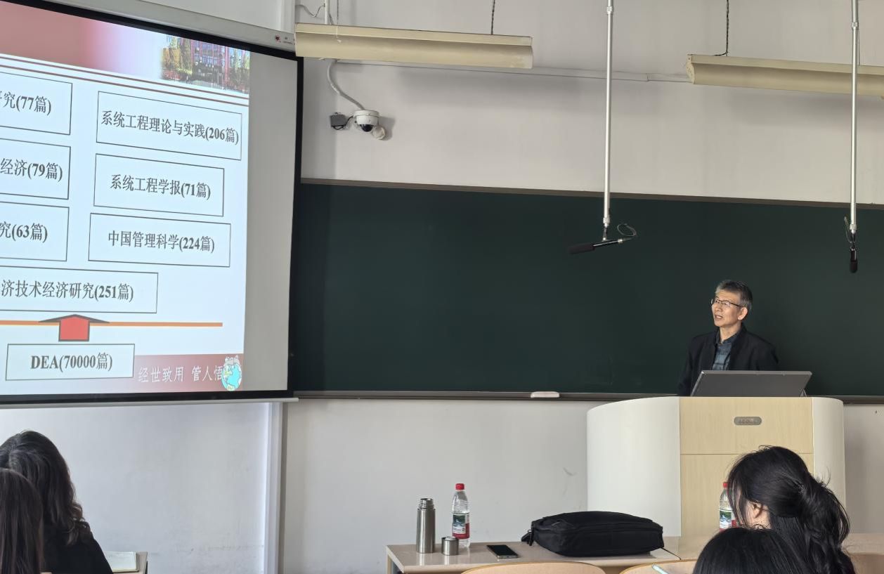 2025年9月24日,内蒙古大学马占新教授应邀来到ok138cn太阳集团古天乐,开展主题为“绩效评价的数据包络分析方法及其研究进展”的学术讲座,为师生带来一场聚焦科研方法与学科前沿的精彩分享。 讲座中,马教授首先从管理科学的重要基础切入,深入浅出地讲解了DEA方法的核心逻辑、典型应用场景以及最新研究进展,示范了如何从海量文献与现实需求中挖掘DEA的科研新切入点,为师生打开了“探寻好的研究课题”的新思路。 在互动交流环节,师生们热情高涨、踊跃提问。马教授对学生的困惑逐一进行了解答,同时强调:“学术研究的本质是创造新知识,大家要敢于在DEA方法的应用场景、拓展维度上突破思维定式。”现场还围绕“量化研究方法的前沿趋势”“不同主体绩效评价的差异与共性”等话题展开深入交流,思维的碰撞让师生们深受启发。 本次讲座不仅助力师生深化了对绩效评价核心方法(DEA)的理解,更从科研方法论层面给予了宝贵指导——传递了“如何从经典方法中挖掘新问题、如何将方法与现实需求结合”的科研思路。为学院的学科发展和人才培养增添了新的动力。