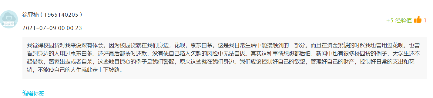 潜移默化,润物细无声。通过挖掘与学生生活密切相关的校园贷事件,通过多种形式,让学生在理解校园贷背后原理的基础上,认清校园贷的真面目,了解其常见的形式,分析其产生的原因,达到专业知识和课程思政融入点的有机结合。
