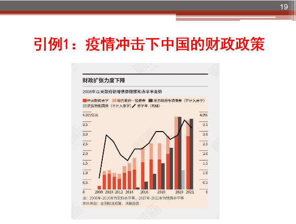 1)引入(Bridge-in):以一段世界卫生组织(WHO)对新型冠状病毒的科普视频导入,以学生经历的和切身感受的事情吸引学生的注意力,然后老师结合数据资料介绍疫情冲击下中国和美国的财政政策,启发学生思考中国和美国在疫情冲击下为什么实施这样的政策?激发学生的好奇心以及进一步学习的兴趣。